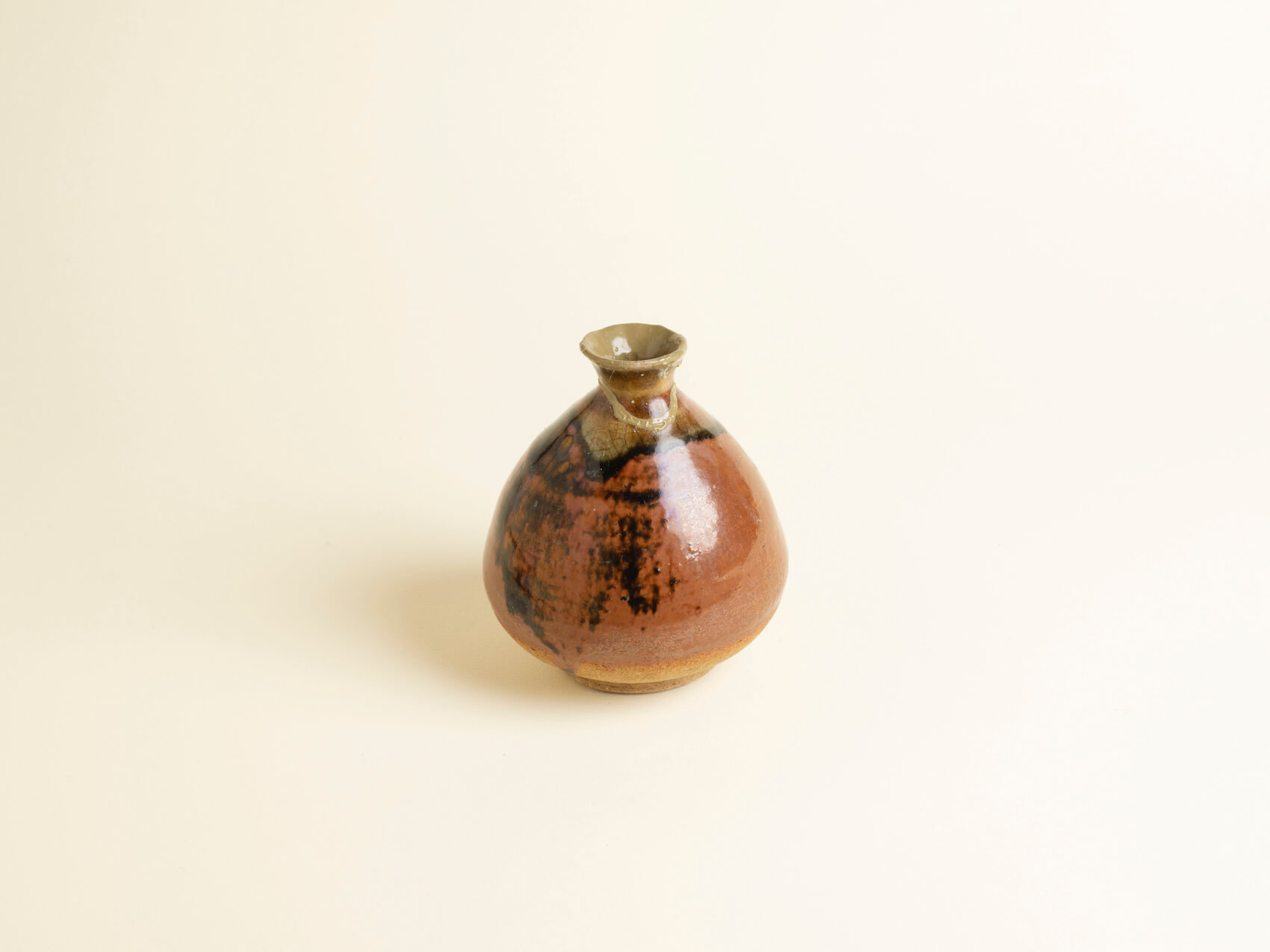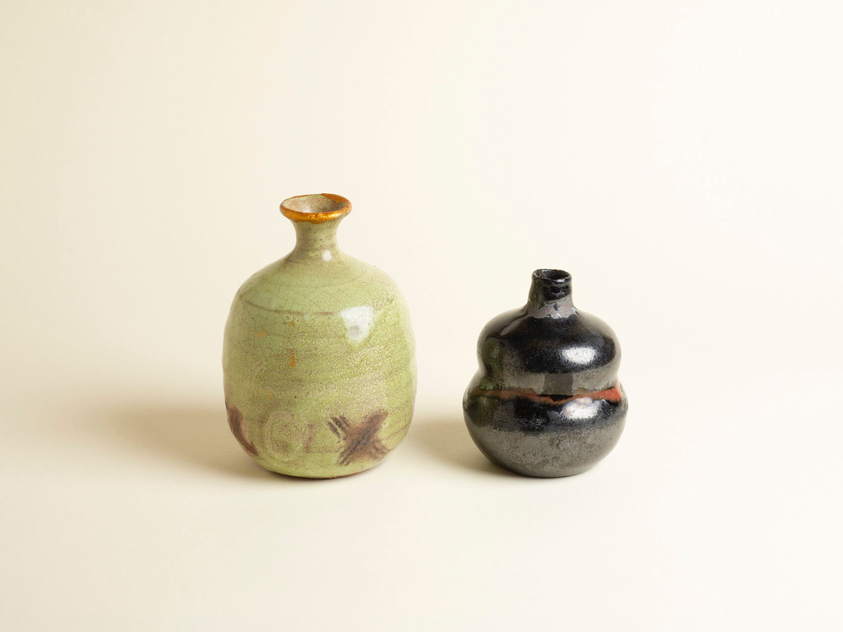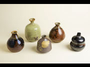 クロームピンク釉、天目釉徳利、上絵金彩徳利、艶黒釉赤織部徳利 125 ×8