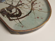 前作、「武蔵野の朧月」の共皿です。下地は同じで、梅の古木を木の切れ端で勢いよく削り出し、まさに梅が匂い立つ瞬間を写した。