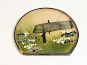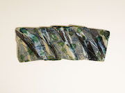 すでに焼かれた緑の上に銀白を塗り、釘で引っ掻くと、綺麗な緑の細い線が出てきた。