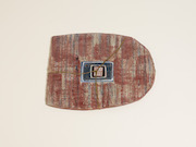 安土桃山稚児甲冑胸当て残欠写し小皿 10cm × 8cm 当店の名物料理、「穴子の白焼き」の小皿です。 鉄分の多い栗東(りっとう)の南蛮の土を使う。 松永安左エ門氏の美術骨董コレクションの写真に、桃山時代の稚児甲冑の胸当て残欠があった。 残欠の面白さと興味が、目的の料理との相性にピッタリとハマったのだった。 鉄分の多い南蛮の土と、白化粧の上に塗った赤、青、黒、鼠の下絵付けの色合いが、見事に調和してくれた。 僕の傑作の一つだと、自惚れている。